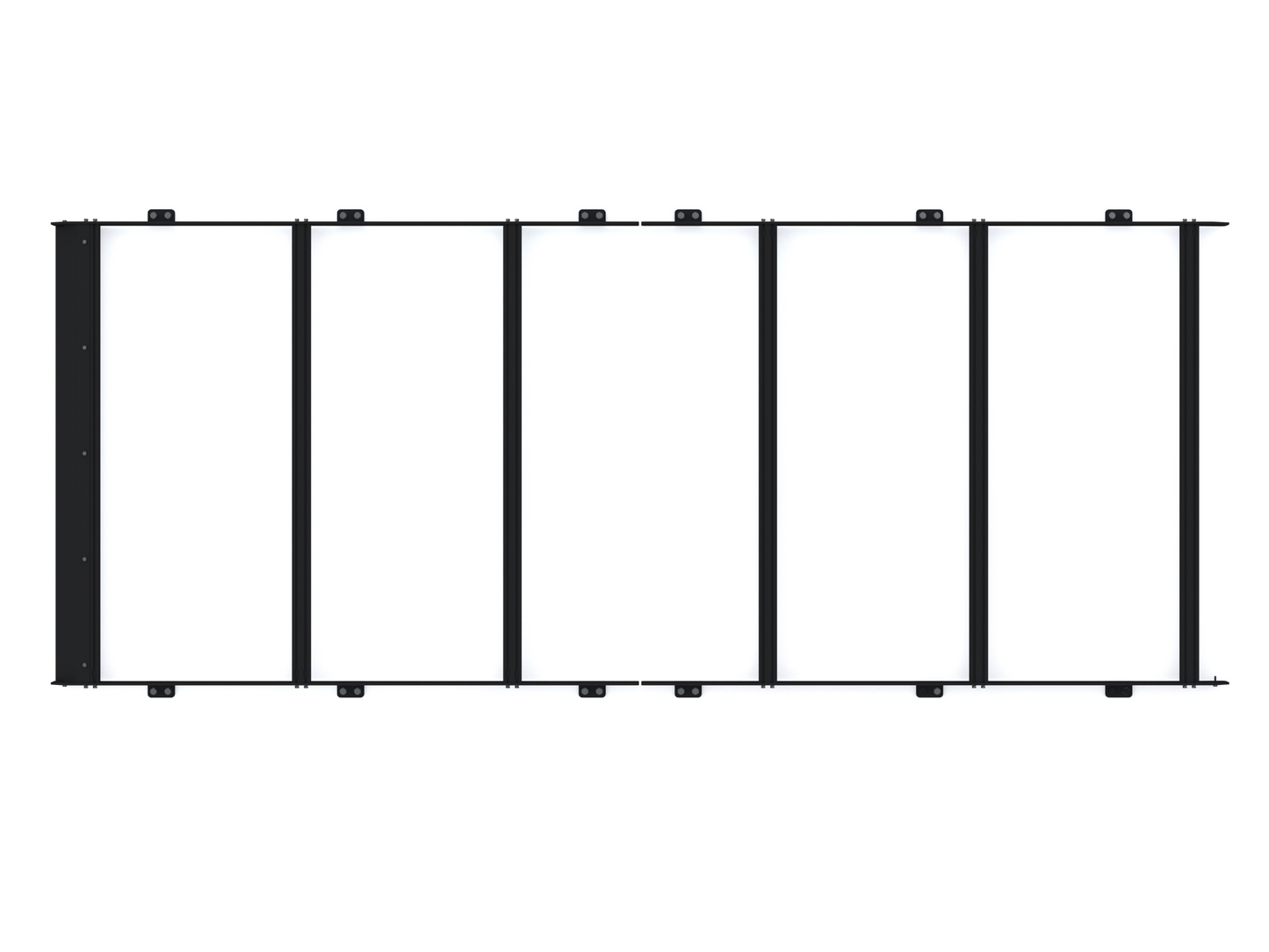 You get versatility, low profile and an all aluminum rack that can easily accommodate to install around and mount; fans, AC units, solar panels, light bars, decking and cargo boxes. The 10 series aluminum extrusion can be easily adjusted at all most any location.