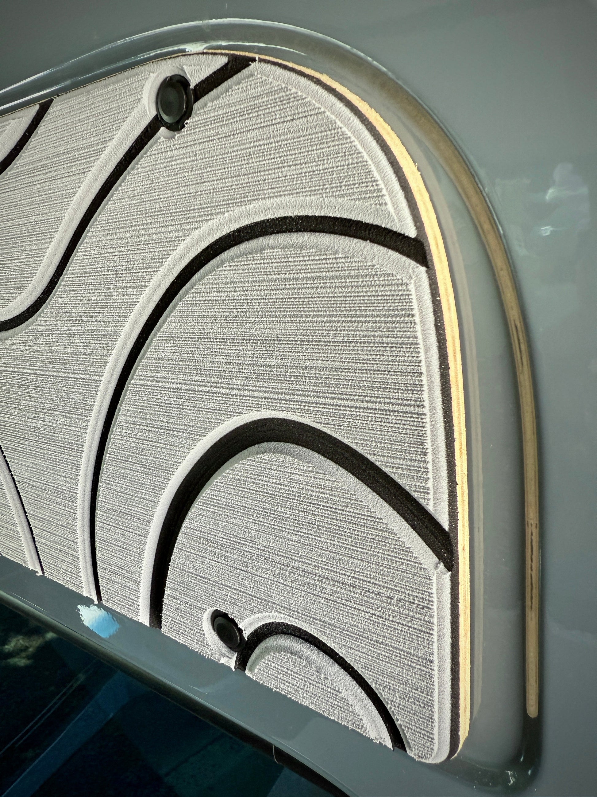 - Finished with Grey/Black CNC-engraved SeaDek for a premium textured surface
