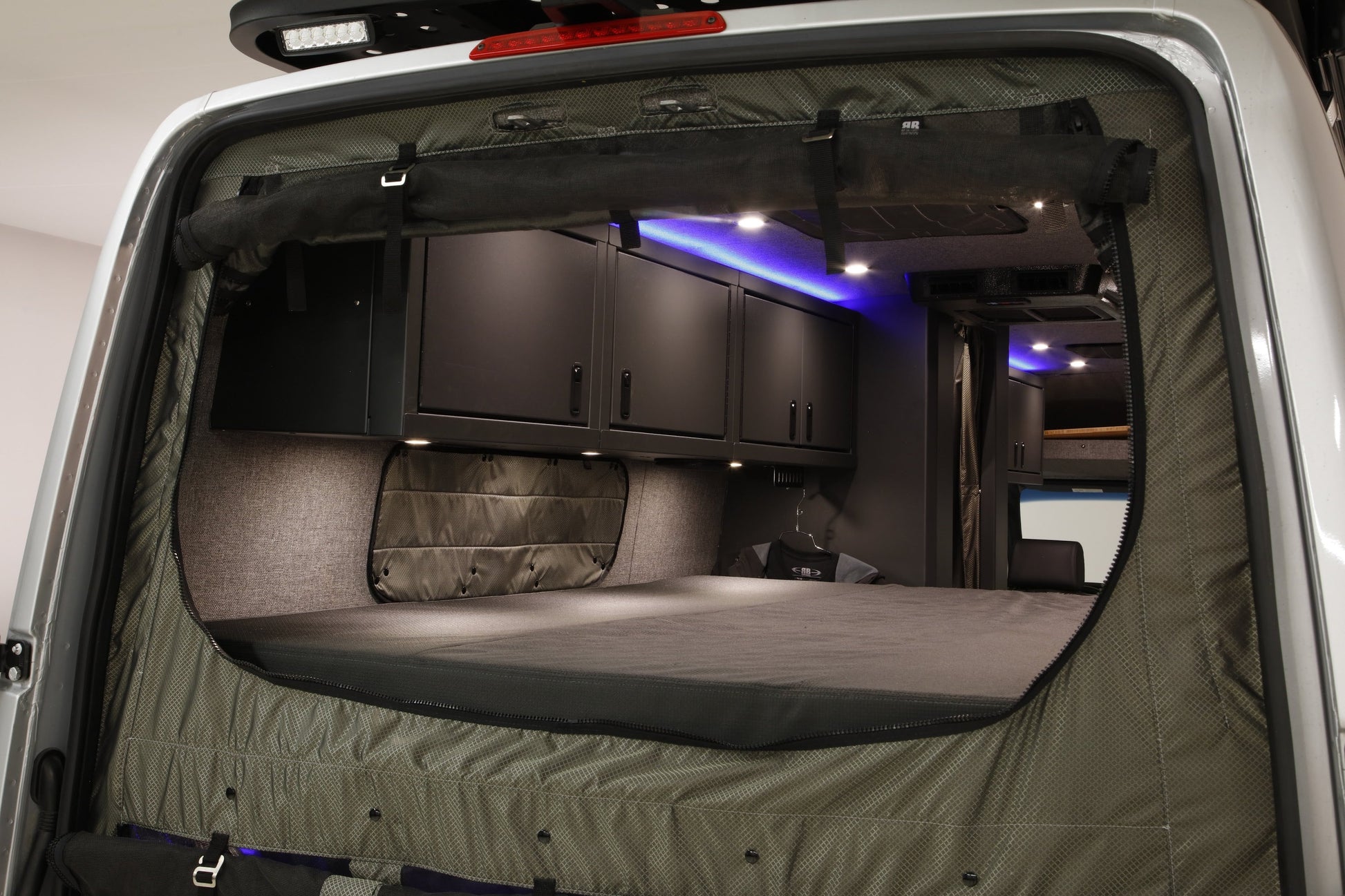 When installing multiple cabinets side-by-side, be sure to bolt them together through the side panels on a work bench before installing multiple cabinets as one assembly. This will make it easier to line the cabinets up and prevent any noise from cabinets rubbing due to van wall flexing.