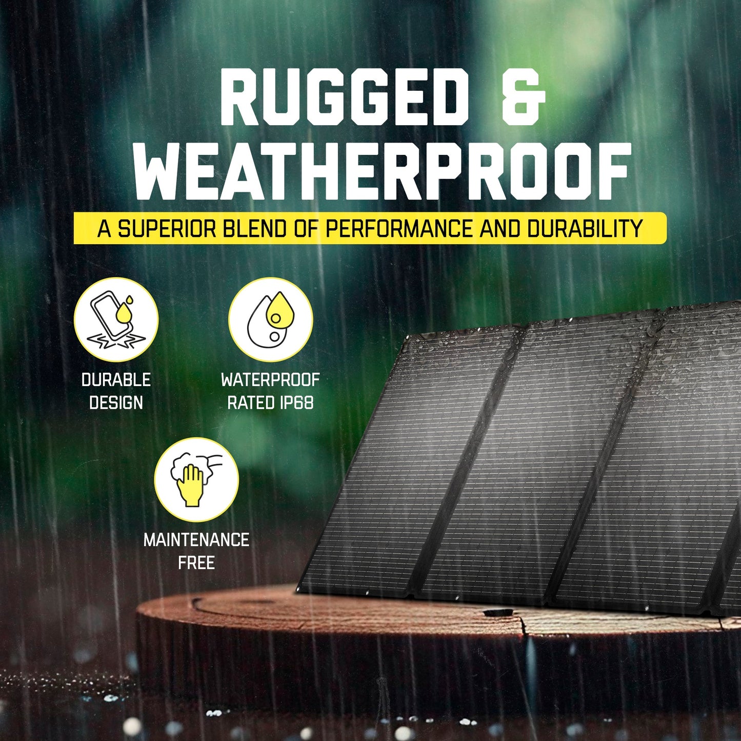• RUGGED, DURABLE & WEATHERPROOF: Designed for the outdoors and all weather conditions, this solar charger is incredibly reliable and built to last. The ETFE exterior layer improves performance and durability, extends the panel’s lifespan and requires minimal maintenance when compared to most solar panels. Waterproof rated IP68.