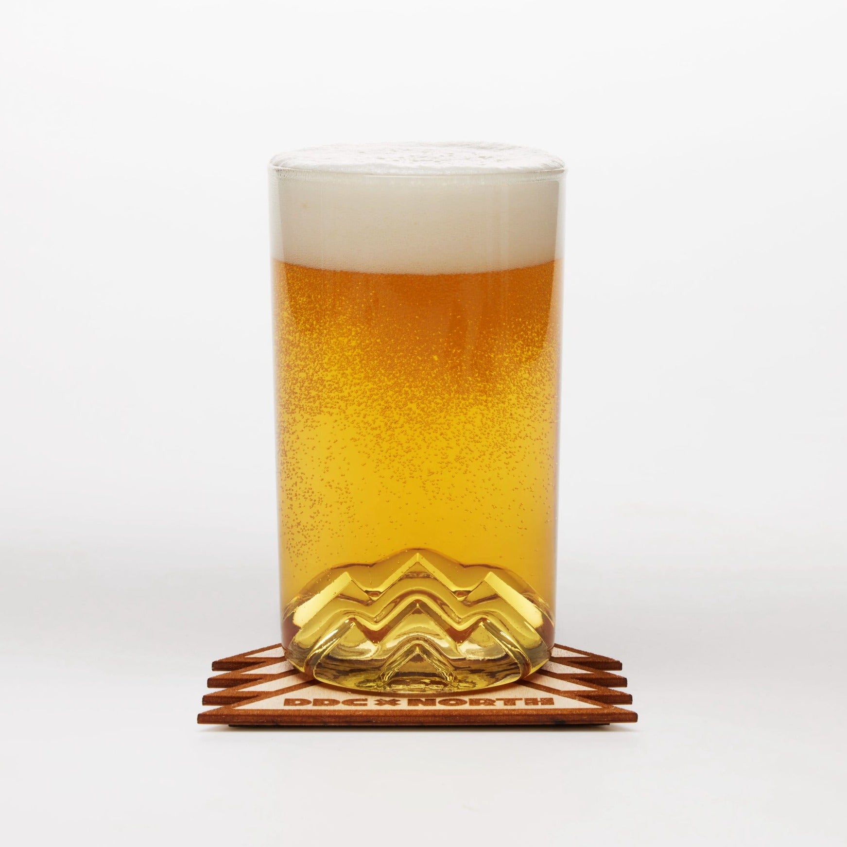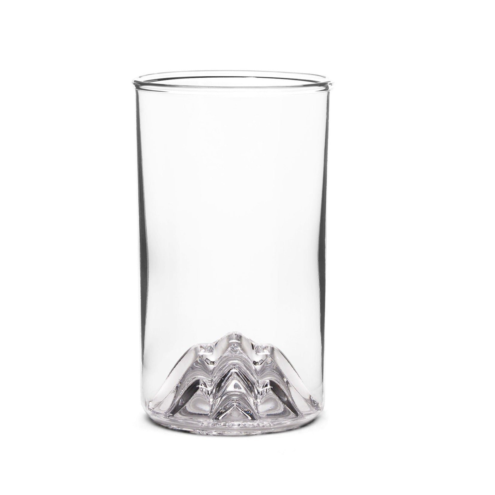 The Thick Lines Pint is our hand blown, 16 oz pint glass with a custom universal mountain design by Aaron Draplin of DDC (Draplin Design Co.) The 3D Thick Lines of those mountains you love in the base bring the mountains home to all. Each glass comes individually packaged and is proudly made in the USA.