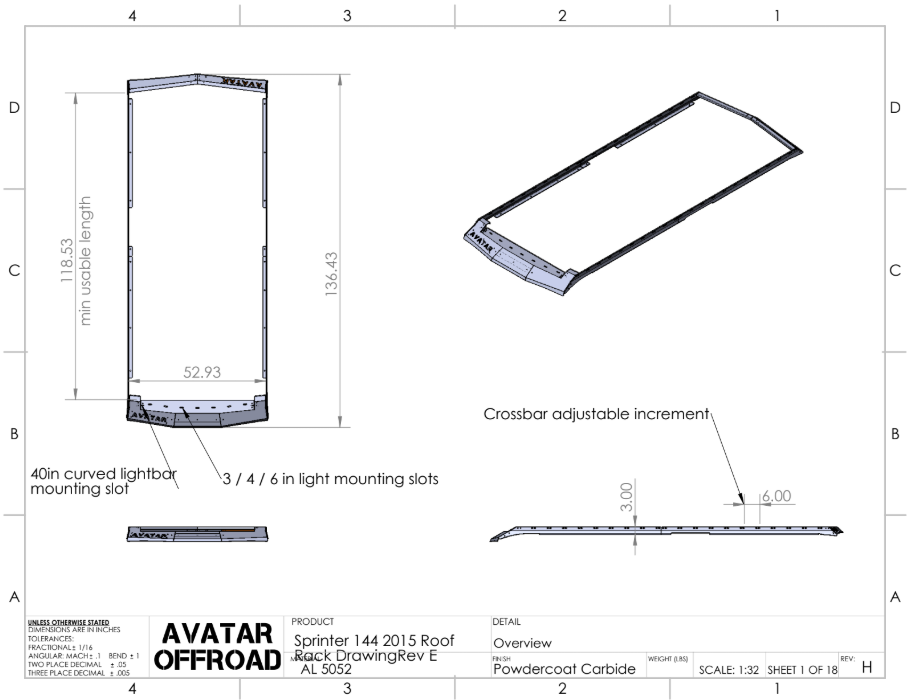 Built for durability and style, the Sprinter Low Profile Roof Rack is the perfect blend of sleek aesthetics and rugged performance.