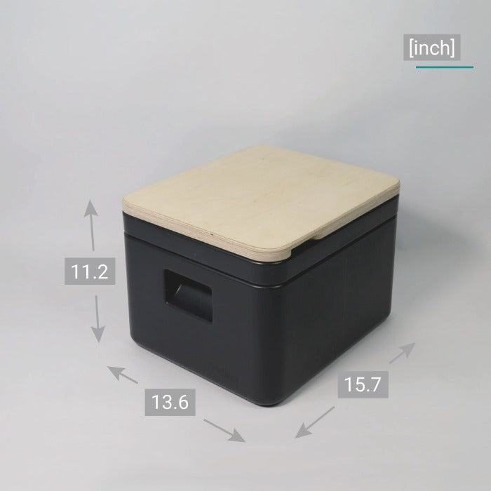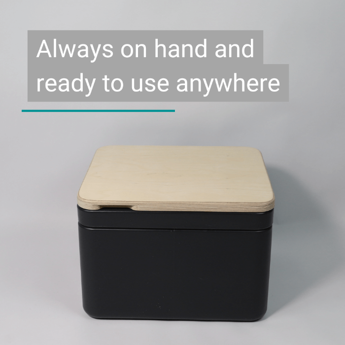 The body and containers of the Trelino® Origin S are made of recyclable, acid- and chemical-resistant polyethylene (PE). The waterproof glued lid is made of multilayer, untreated birch wood.