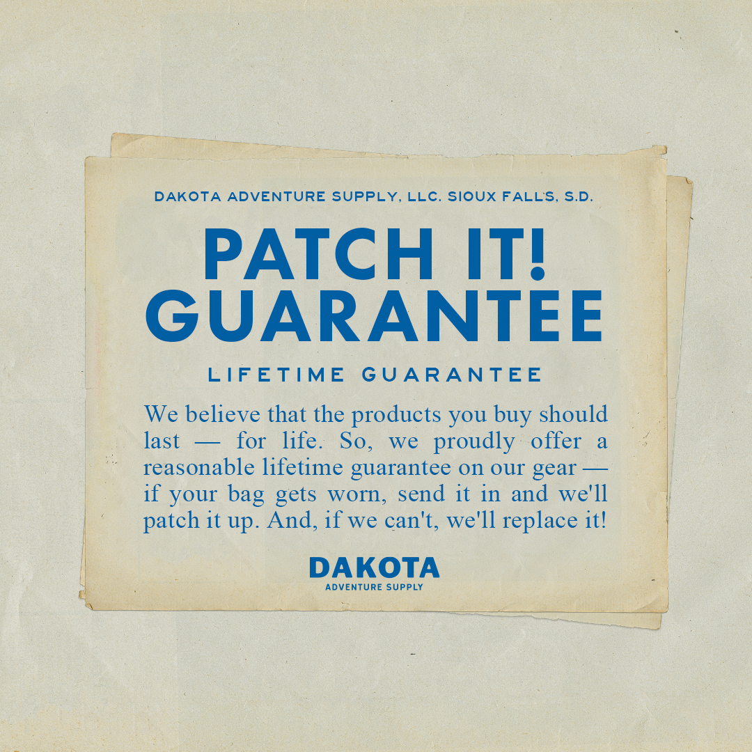 We build gear that’s meant to last a lifetime. If your bag gets damaged, we’ll repair it so it can continue to serve you on all your adventures. Repairs, including patching and seam fixes, are free—you just cover shipping. If the issue is due to a manufacturing defect, we’ll replace it. Contact us at support@dakotaadventuresupply.com to arrange a repair.